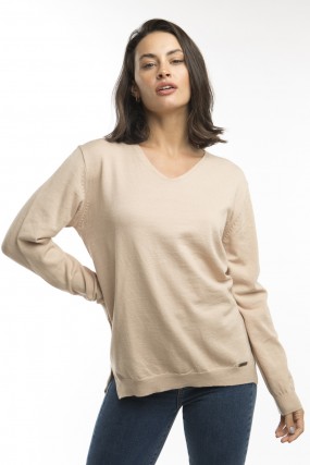 Sweater con escote en v con tajos laterales confeccionado en bremer.